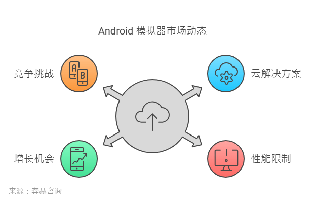 Android 模仿器市场所作很是激烈,Google、BlueStacks、Genymotion 和 NoxPlayer 等大公司都参取此中。它们以高机能、易于利用的界面和多功能的模仿器吸引开辟人员和通俗用户。市场需求次要由挪动使用法式开辟、越来越多的用户但愿正在计较机上玩 Android 使用法式和逛戏。跟着手艺的前进,大品牌不竭推出新功能,例如加强的图形处置能力、云集成和多设备同步,以改善用户体验。取此同时,新公司不竭出现,供给更具合作力的处理方案,使市场所作愈加激烈。正在这个瞬息万变的市场中,公司必需不竭立异和优化产物,以满脚用户对机能和兼容性的高要求并连结合作力。