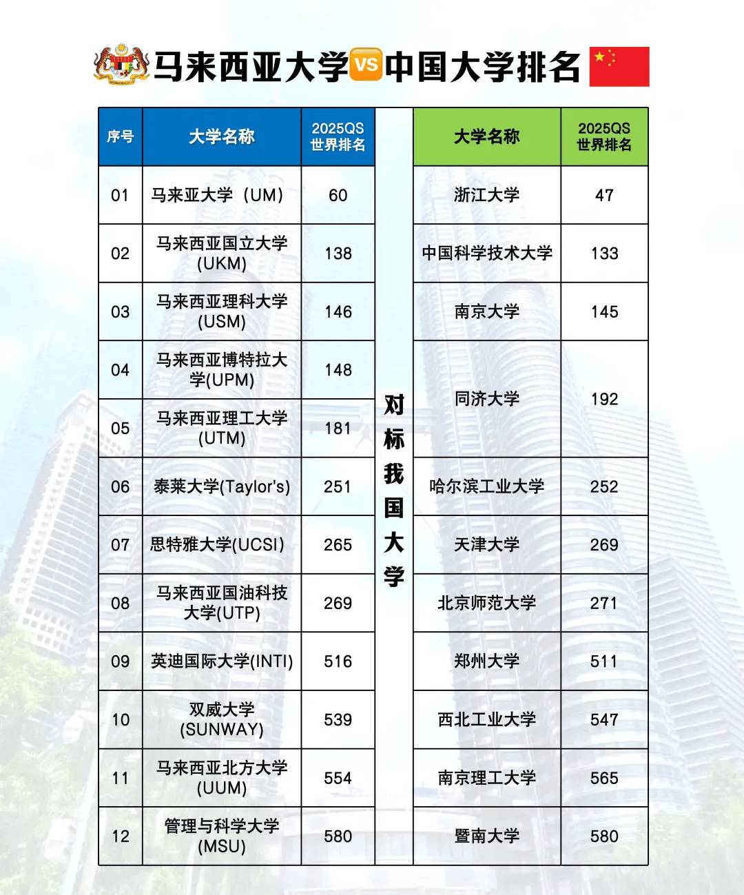 近年令吉汇率相对不变,加之马来西亚补助政策,留学成本持续亲平易近。以首都吉隆坡为例,即即是大手大脚一些,全年膏火加糊口费折合人平易近币约12万元。1️⃣国立大学年均膏火约2万令吉(折合人平易近币3万元),部门专业以至低至1。5万令吉(约2。3万人平易近币)。2️⃣入学及测验费用:马来西亚无“入学金”轨制,而且少有需要缴纳高额“留位费”的学校。3️⃣糊口费:涵盖住宿、餐饮、交通等,吉隆坡每月约3000令吉(人平易近币4500元),其他城市如槟城、新山可低至2000令吉(约3000元)。2️⃣专业劣势:计较机科学、酒店办理、石油工程、商科等专业位居亚洲前列。国立大学专业排名“软科、QS“双喜临门,思特雅大学音乐表演专业全球TOP50。1️⃣ 薪资取福利:平均月薪约6000令吉(人平易近币9000元),IT、金融等行业可达1万令吉(约1。5万人平易近币)。留学生可享医疗安全、住房补助等福利。2️⃣居留政策:结业后可申请“第二家园打算”或“专业人才签证”(如MM2H),STEM范畴结业生更易获工做签。数据显示,2023年超30%留学生选择留马就业。3️⃣行业机缘:数字经济、旅逛业、制制业等范畴需求兴旺。华为、阿里等中资企业正在马扩招,本土企业(如亚航、Petronas)亦积极吸纳双语人才。通盘不是问题!无需高考绩绩,也不消死磕雅思托福,本科线边缘的同窗也能 “一键中转” 马来西亚前 200 名校,别人眼里的 “不成能”,正在这里都是常规操做!背靠 985 高校这棵 “大树”,国内进修阶段间接解锁顶配资本!和校本部学生共用超牛的传授团队、先辈的尝试室,提前感触感染前沿学术空气,这不比通俗平易近办本科喷鼻爆了?膏火和通俗平易近办本科差不多,但弄法可纷歧样!先正在国内打根本,省下一大笔前期留膏火用,最初还能稳稳拿下国际名校文凭,四舍五入就是 “花小钱办大事”,性价比间接拉满!结业背工握的马来西亚名校文凭,那可是国际的 “硬通货”!回国认证后,考公、进大厂、申请海外研究生,一绿灯,从国际化课程培育性思维,到个性化方案全程保驾护航,从言语培训到学术指点,全方位帮力你无缝跟尾海外进修。别人还正在苍茫,你曾经开脚马力,朝着人生巅峰冲刺啦!做为马来西亚高档教育系统中的旗舰院校,马来亚大学(1905 年建校)深度践行国度 “杰出学术打算”,通过多学科协同成长计谋,正在 QS 世界排名中持续多年连结领先。其 17 个学科进入世界前 100,印证了该校正在文理医学范畴的计谋结构成效。做为环承平洋大盟等四大国际组织,马来亚大学正在国际学术合做取人才培育方面阐扬引领感化,2025 年 QS 全球第 60 位的排名,表现了其界高档教育款式中的焦点地位。